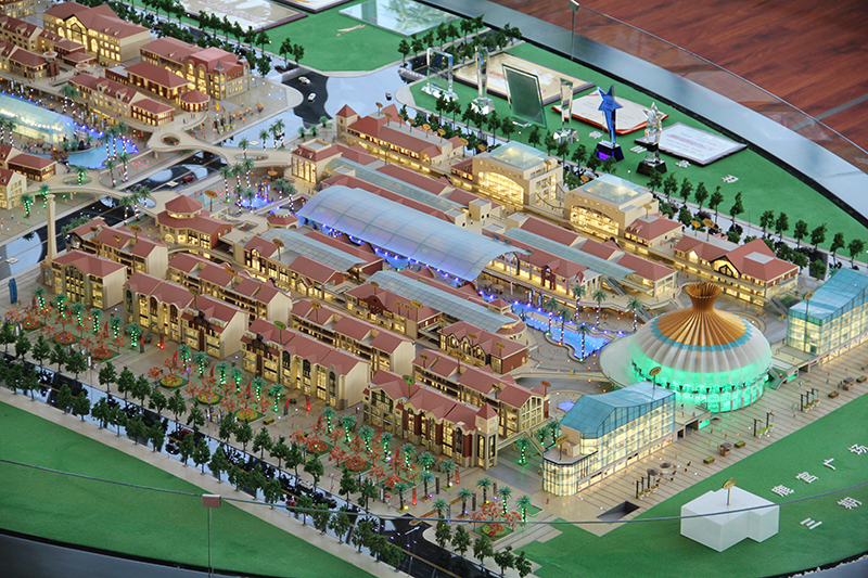 二是,好看的沙盤模型制作合理配備燈光。為保證整個(gè)環(huán)境的和諧統(tǒng)一,燈光配備要根據(jù)景物的特點(diǎn)來進(jìn)行,做到整齊劃一,層次分明,突出重點(diǎn),同時(shí)又適當(dāng)配置一定的反襯,切忌到處都通亮。如住宅區(qū)的建筑、水景燈光盡量用暖色,常綠樹的背景則用冷光源,路燈和庭園燈應(yīng)晝整潔劃一,色彩盡量豐富些、層次多些,以烘托整體環(huán)境氣氛。